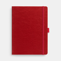 Еженедельник в твердой обложке выполнен из материала Nebraska, красный РР, дополнен резинкой, петлей для ручки и ляссе красного цвета.